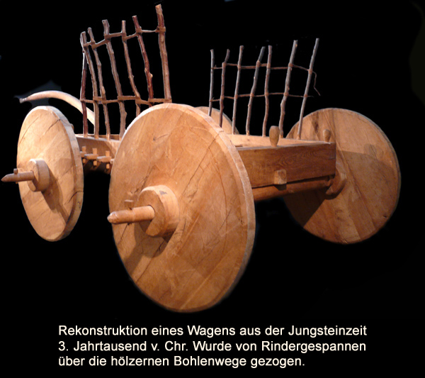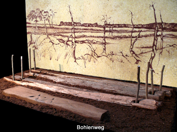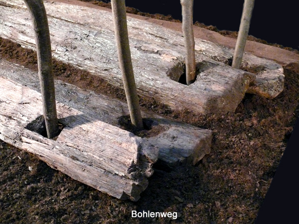 praktizierte Bauweise. Die Bohlen der Wege waren auf beiden Seiten