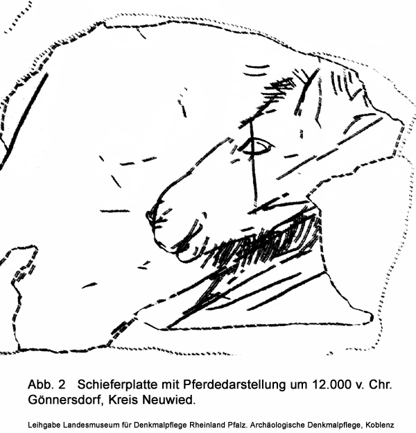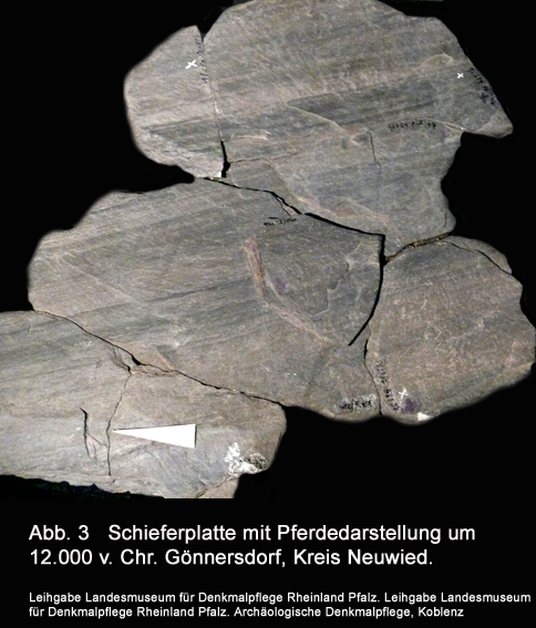Tierdarstellungen, auch solchen von Wildpferden. Die Schieferplatten