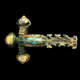Aufwendig mit Niello verziert sind der Fuß und Bügel einer Fibel