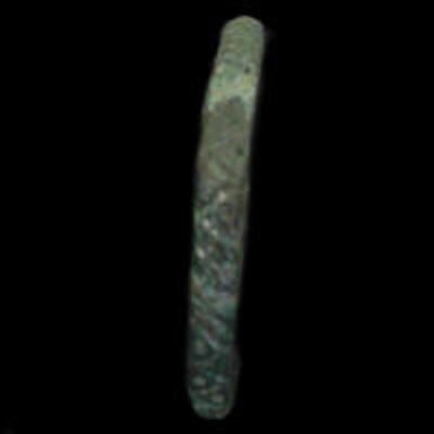 Ein Blecharmreifen mit randlichem Zacken-Muster. Gellep Grab 5723