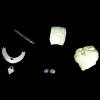 Lunaanhänger aus Silber, Herkuleskeule aus Gagat, Melonenperle und Glaskugel. Gellep Grab 2982 Kindergrab