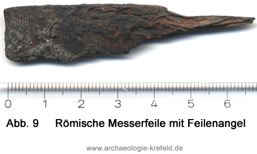 ie römische Messerfeile wurde 1973 im Rheinhafen bei den umfangreichen Auskiesungsarbeiten zur Hafenerweiterung unterhalb des Kastells Gelduba gefunden.