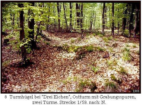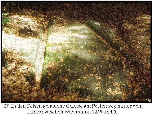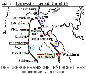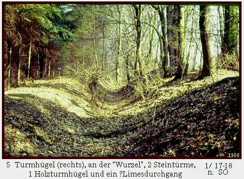 fanden in den Ferien statt. Ich wurde auch Mitglied im Eichstätter Historischen Verein, lernte dort auch den Herrn Rudolf Hager kennen, der meine Limesbildersammlung durch einige aussagekräftige Luftbilder ergänzte. Auf der Strecke des „Rätischen Limes“ war ich oft in der sachkundigen Begleitung der Herren Hawlata und Hager unterwegs. Da aber die Limeswanderwege oft den eigentlichen Limesverlauf verlassen, musste wir die Limeskarten der Kaiserlichen „Reichs-Limes-Kommission“ auf die neuen Wanderkarten übertragen und oft querfeldein durch Wälder und Felder gehen. Teilweise waren einige Türme gut beschildert, doch auch viele, besonders interessante Fundstellen waren schwer oder auch überhaupt nicht auffindbar.