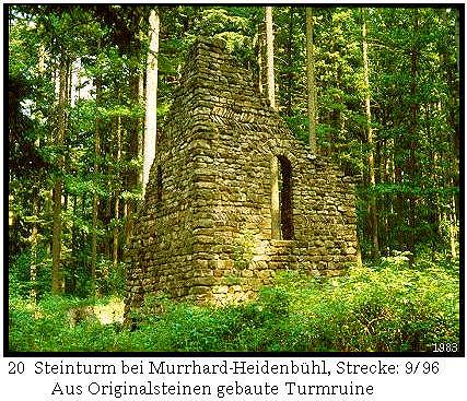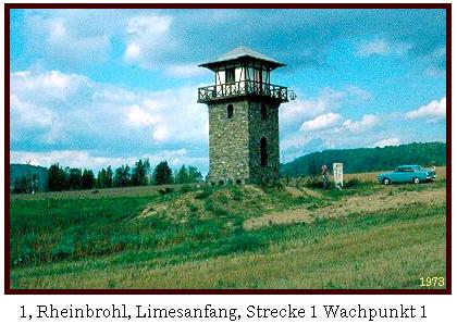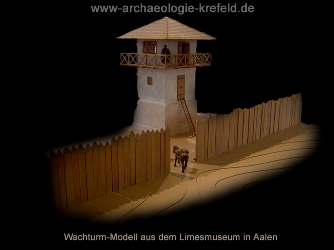 er Limes bestand anfangs lediglich aus einem Grenzweg, der in regelmäßigen Abständen durch Holztürme gesichert wurde. Die Wachtposten sollten sich durch optische oder akustische Signale verständigen können, deshalb wurden die Türme in Sichtweite gebaut. Später stellte man die Holztürme auf steinerne Fundamente, um ihre Lebensdauer zu erhöhen. Schließlich ersetzte man sie häufig ganz durch Steintürme.