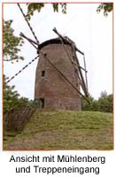 Am unteren, zylindrischen Teil des Turmes erkennt man noch heute deutlich den alten hochliegenden Eingang und die für einen Wehrturm typischen Schlitzfenster. Mauertechnik und Steinformate weisen auf die Zeit um 1300. Der obere konische Teil des Turms und die holländische Kappe stammen wie das erhaltene Mahlwerk allerdings erst aus dem 19. Jahrhundert Eine Bauinschrift verweist auf das Jahr 1808. Kurz zuvor hatten die Franzosen das Kirchengut, darunter auch die kurfürstliche Mühle eingezogen und an private Interessenten verkauft