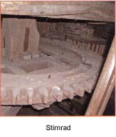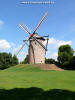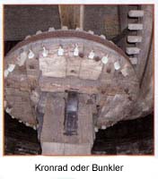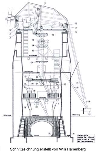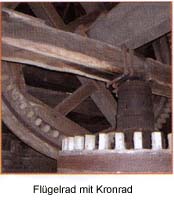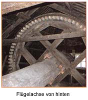 die riesigen Flügel im Wind drehen, arbeitet auch das steinerne Mahlwerk