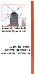 m Mai 2004 wurde der Bauverein “Geismühle Krefeld- Oppum“ e.V. von 7 Mitgliedern gegründet. Das Ziel ist, die Instandsetzung und Funktionswiederherstellung der unter Denkmalschutz stehenden Geismühle.