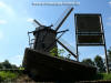 Im Vordergrund ein Mühlstein. Daneben ein Hinweisschild zur Geschichte der Mühle.